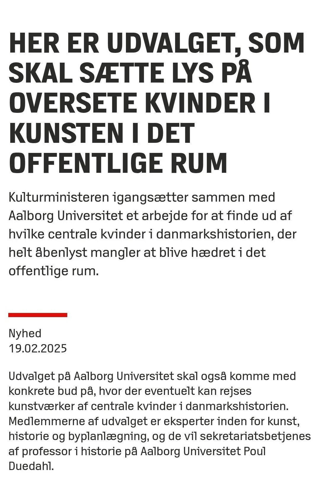 Kulturministeren igangsætter et arbejde for at finde ud af hvilke centrale kvinder i danmarkshistorien, der helt åbenlyst mangler at blive hædret i det offentlige rum.
